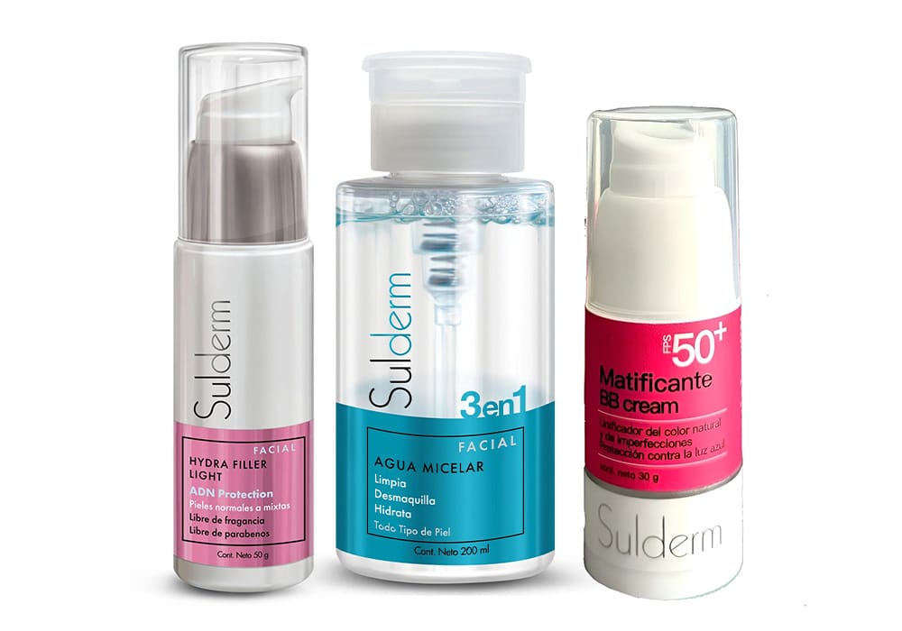 Este combo Sulderm reúne tres esenciales para una rutina facial completa, práctica y efectiva. La Agua Micelar 3 en 1 limpia, desmaquilla e hidrata en un solo paso, preparando la piel para recibir los activos. El Hydra Filler Light aporta hidratación profunda, mejora la textura y ayuda a fortalecer la barrera cutánea, ideal para pieles normales a mixtas. Para finalizar, la BB Cream Matificante FPS 50+ unifica el tono, controla el brillo y brinda alta protección solar, dejando un acabado natural durante todo el día. Un kit perfecto para mantener la piel fresca, luminosa y protegida.