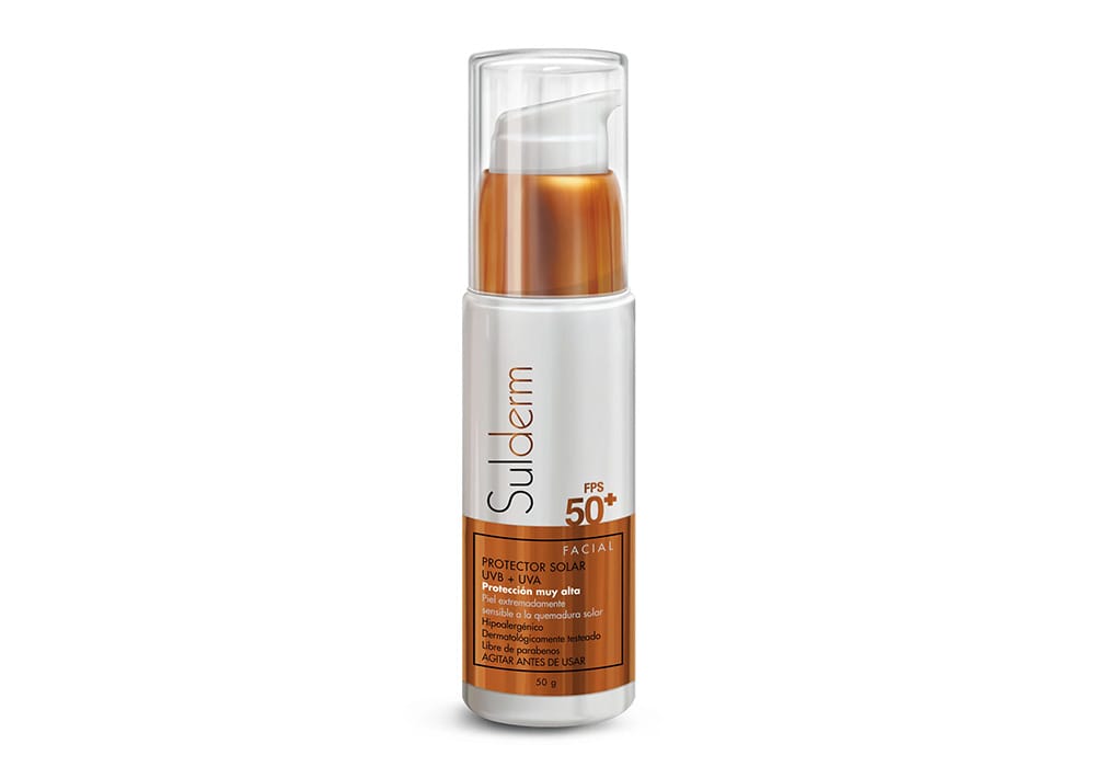 El Protector Solar Facial Sulderm FPS 50+ sin color brinda muy alta protección diaria contra rayos UVA/UVB para todo tipo de piel. Previene el envejecimiento prematuro (arrugas y manchas solares) formando una pantalla invisible de amplio espectro. Su textura es ligera, de rápida absorción y acabado mate de toque seco, por lo que no deja brillo ni sensación pesada. Es no comedogénico y se siente cómodo incluso en pieles mixtas o grasas. Ideal para uso urbano diario, se aplica tras la hidratante para proteger la piel del sol manteniéndola saludable y uniforme.